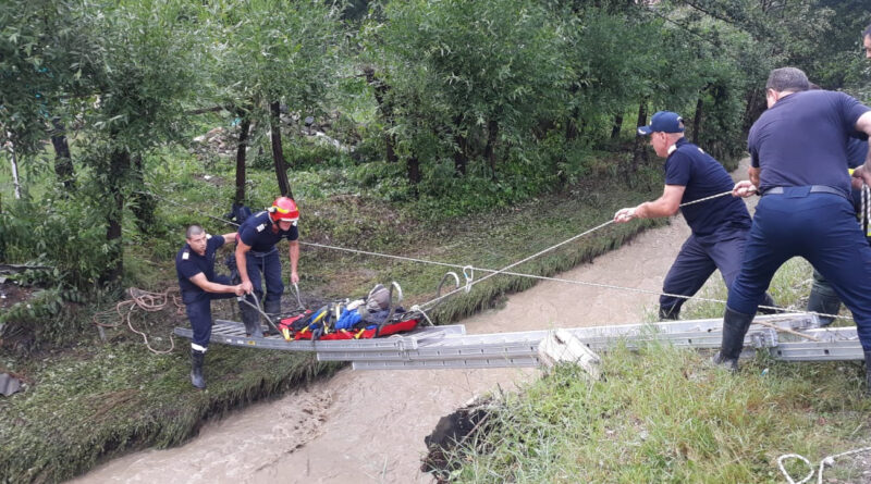 Pompierii au evacuat o persoană (femeie – 89 de ani), din locuința afectată de arborii căzuți peste aceasta și rămasă izolată ca urmare a distrugerii podețului de acces.