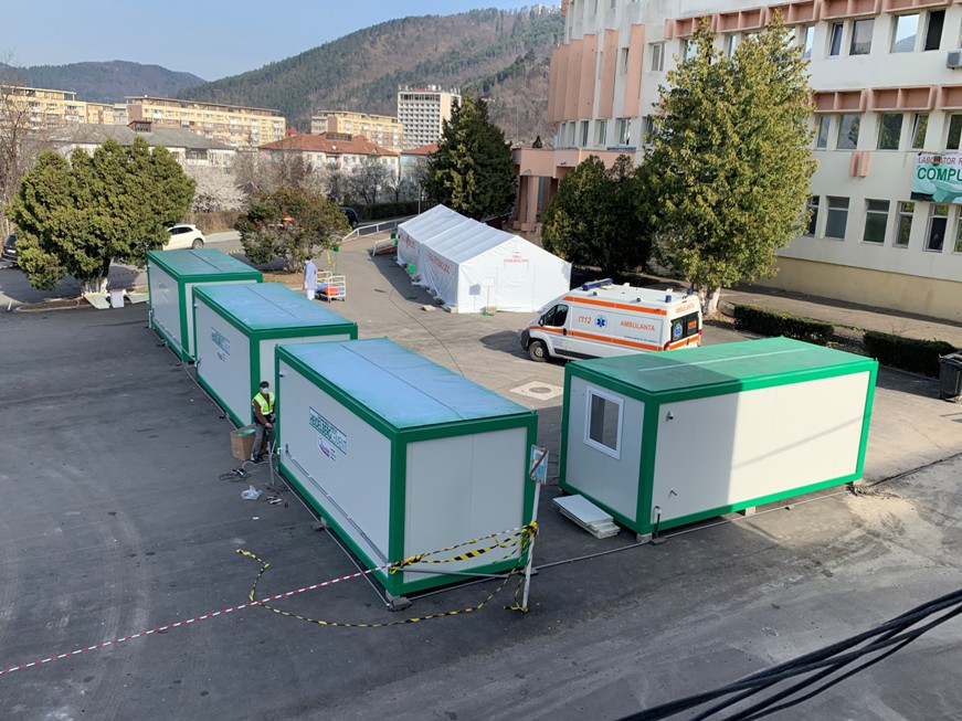 HeidelbergCement România în parteneriat cu Asociația Volunteer for Life au pregătit containere pentru triaj, unde vor fi primiți bolnavii de Coronavirus. Acestea sunt echipate, mobilate și dezinfectate, astfel încât trierea pacienților să aibă loc în afara perimetrului propriu-zis al spitalului. Conțin și camere de izolare, unde pacienții așteaptă să fie trimiși pe secțiile de specialitate.