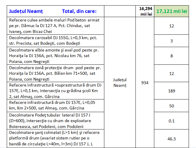 Guvernul PNL alocă județului Neamț suma de 17.121.000 lei, bani care vor ajunge la 49 de unități teritorial administrative care au fost afectate de inundațiile din ultima perioadă.