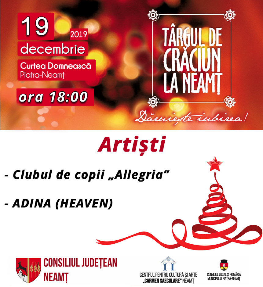 Program Târgul de Crăciun la Neamț – Joi 19 Decembrie 2019