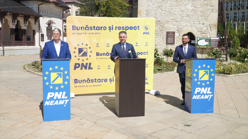 Ministrul Fondurilor Europene Marcel Boloș, președintele PNL Neamț Mugur Cozmanciuc (candidatul PNL la președinția CJ Neamț) și Andrei Carabelea (candidatul la primăria muncipiului Piatra Neamț) au susținut vineri, 28 august, o conferință de presă în care au prezentat principalele proiecte de dezvoltare, ce vor avea ca sursă de finanțare fonduri europene de aproape 80 miliarde euro, care au fost alocate României.
