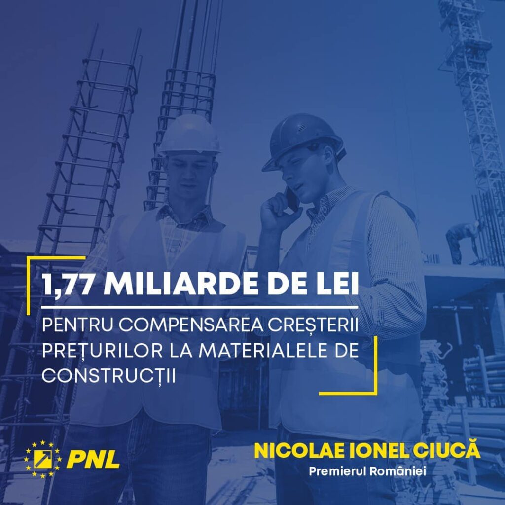 La scurt timp de la adoptare, Guvernul începe să implementeze măsurile din pachetul ”Sprijin pentru România”. Premierul Nicolae Ionel Ciucă a anunțat alocarea a 1,77 miliarde de lei pentru compensarea creșterii prețurilor la materialele de construcții.
