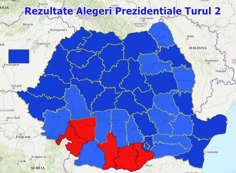 Klaus Iohannis a câștigat alegerile la nivel național cu aproape 66% și a învins în nu mai puțin de 37 de județe. Viorica Dăncilă a reușit să se impună în doar cinci județe din sudul țării, pierzând la o diferență mică Buzăul, Botoșaniul și Doljul. HotNews.ro a centralizat rezultatele provizorii de la AEP și a realizat o hartă interactivă și un tabel detaliat cu rezultatele alegerilor prezidențiale din Turul 2.