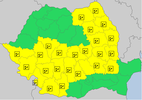 ANM anunță COD GALBEN de averse torențiale, vor fi perioade cu instabilitate atmosferică accentuată ce se va manifesta prin averse, vijelii și intensificări puternice ale vântului pentru județul Neamț.