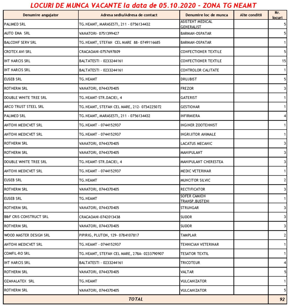Cauți un loc de muncă? AJOFM anunță noi locuri de muncă, disponibile pentru Piatra Neamț, Roman și Târgu Neamț.