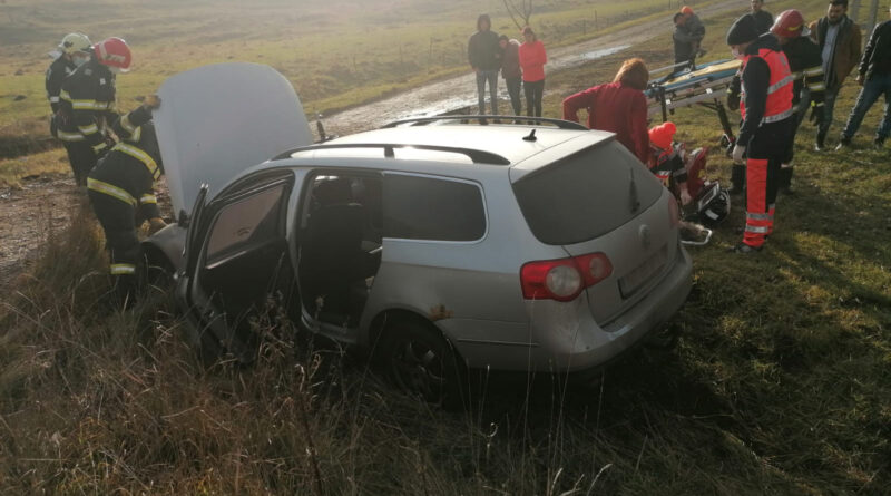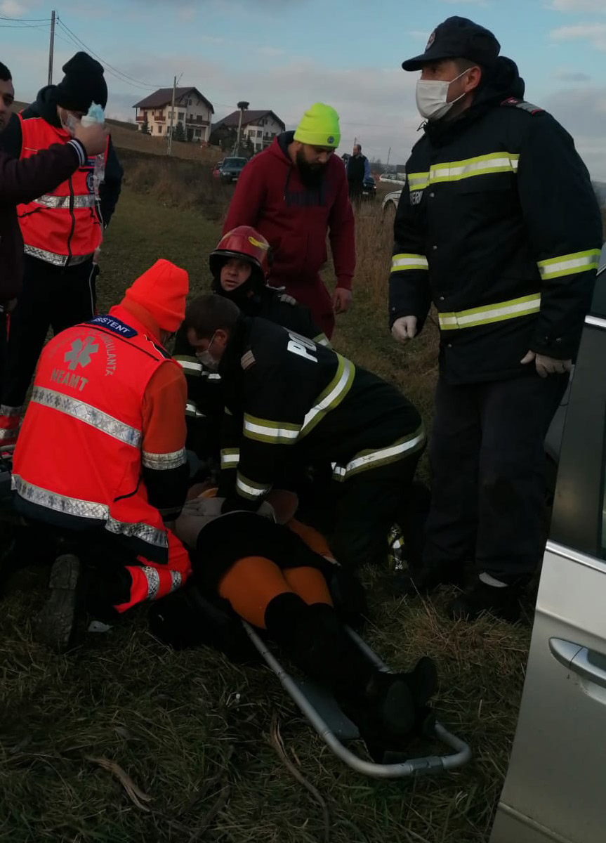 În urma accidentului rutier, în care un autoturism a părăsit partea carosabilă și a intrat într-un podeț, a rezultat o victimă (femeie de aproximativ 35 de ani).