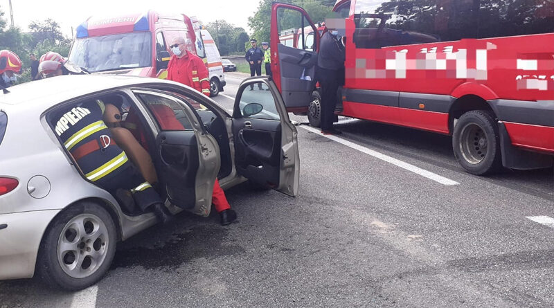 Accident rutier între un microbuz și un autoturism, pe DN2
