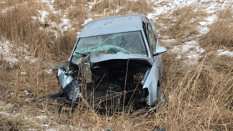 În urma accidentului rutier, un autoturism a părăsit partea carosabilă iar în interiorul autoturismului au rămas blocate două persoane.