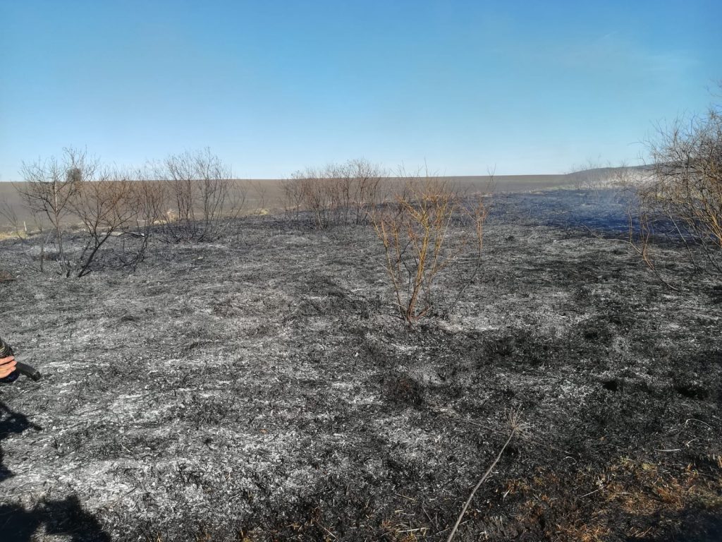 A ars vegetaţie uscată pe o suprafață de aproximativ trei hectare