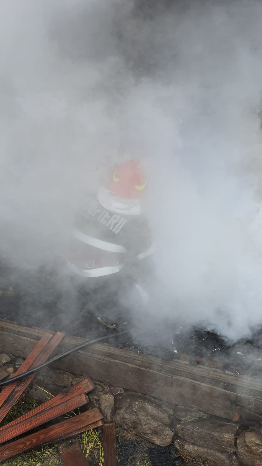 Imagini – Bărbat găsit carbonizat în urma unui incendiu la o locuință