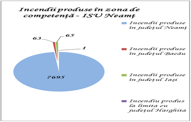 În zona de competenţă a Inspectoratului pentru Situaţii de urgenţă „Petrodava” al judeţului Neamţ s-au produs 7824 incendii, din care 7695 s-au produs pe teritoriul judeţului nostru, 1 incendiu s-a produs la limita cu jud. Harghita, iar 128 incendii s-au produs pe raza judeţelor Bacău şi Iaşi, unde unitatea noastră intervine în baza unor planuri comune de intervenţie.