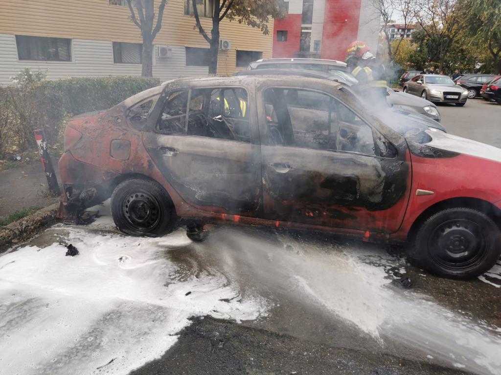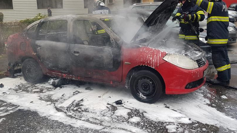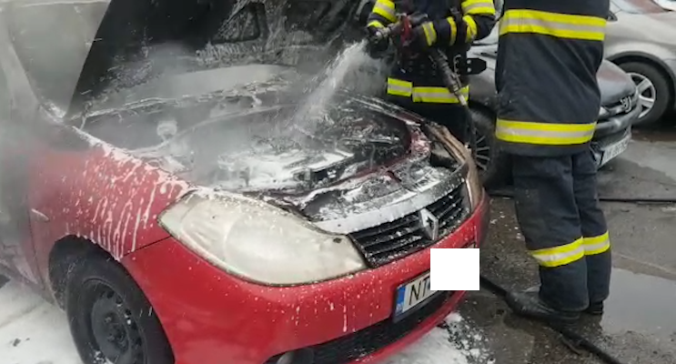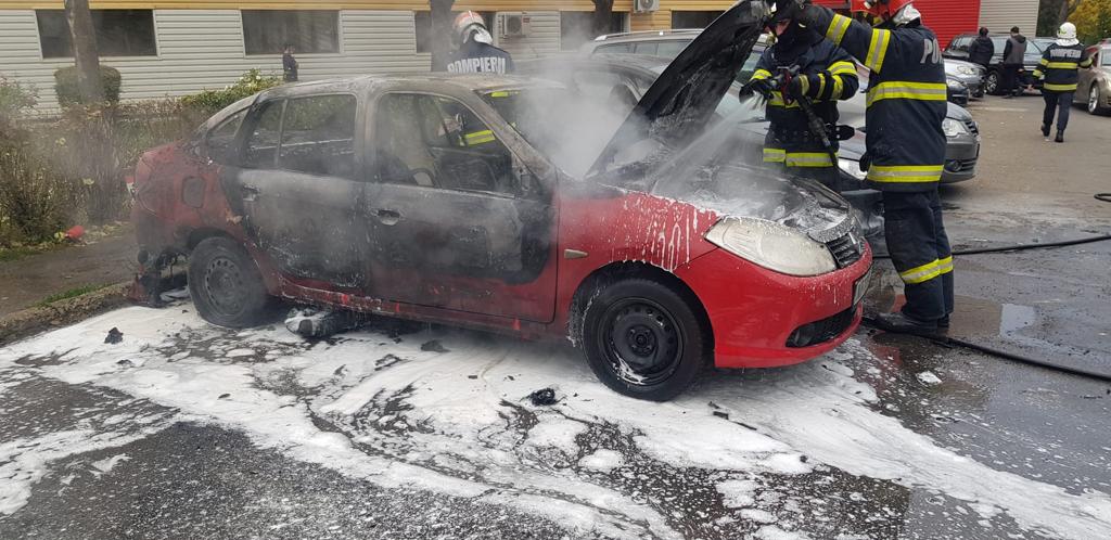 Un autoturism înmatriculat în Neamț, a luat foc într-o parcare din Iași.