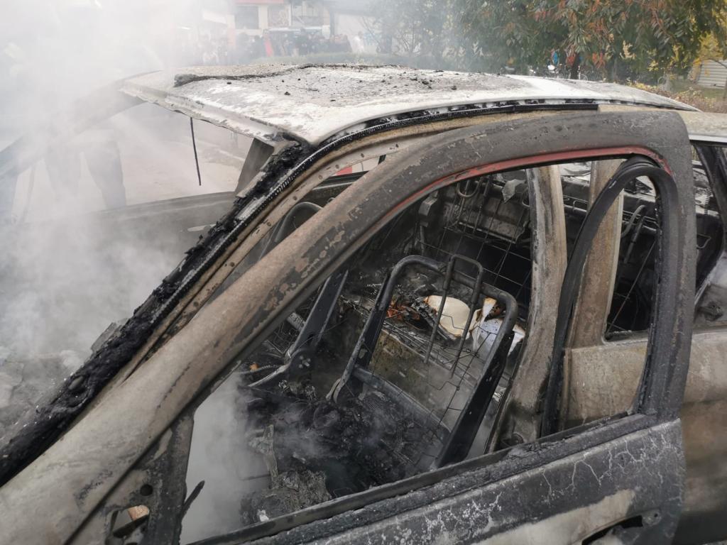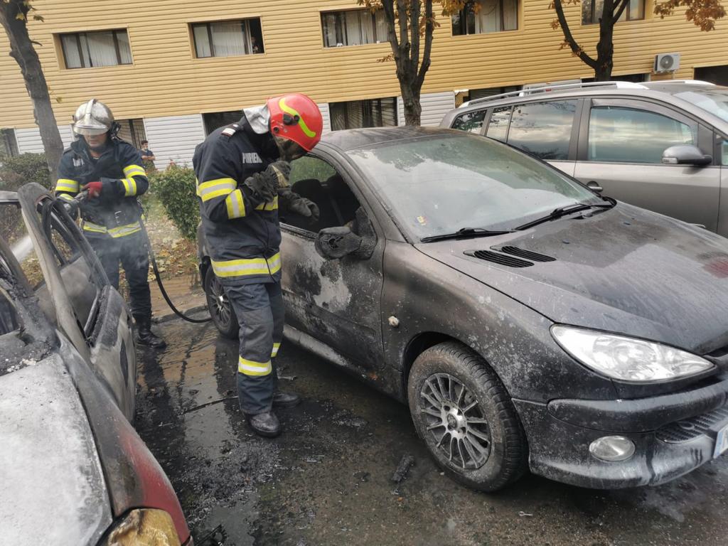 În urma incendiului, un alt autoturism parcat a fost afectat de flăcările uriașe.