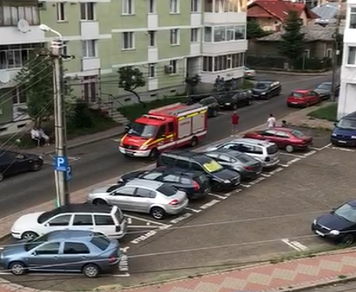 Aceștia au intervenit cu o autospecială cu scară extensibilă folosită în stingerea incendiilor.
