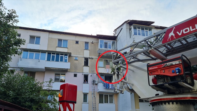 În această dimineață, pompierii au fost înștiințati despre faptul că o persoană a rămas blocată pe acoperișul unui balcon (între etajul 2 și 3), al unui bloc de locuințe din strada 1 Decembrie 1918 în municipiul Piatra-Neamț.