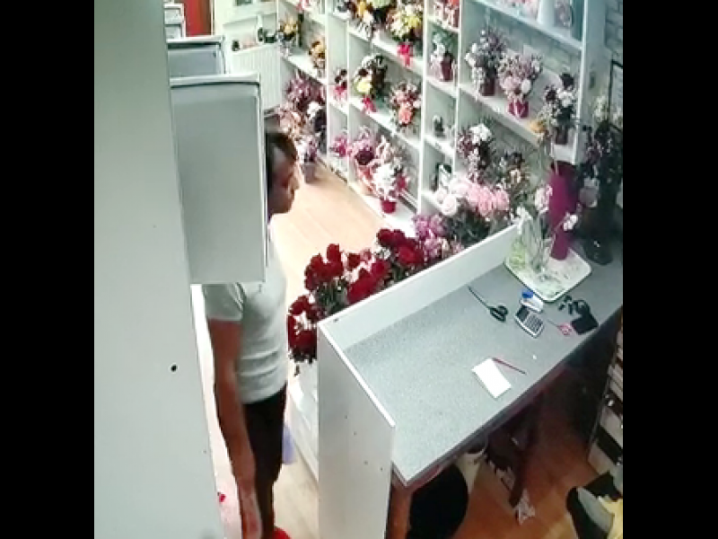 Acesta a fost surprins de camerele video amplasate în interiorul unei societăți comerciale din municipiul Roman.
